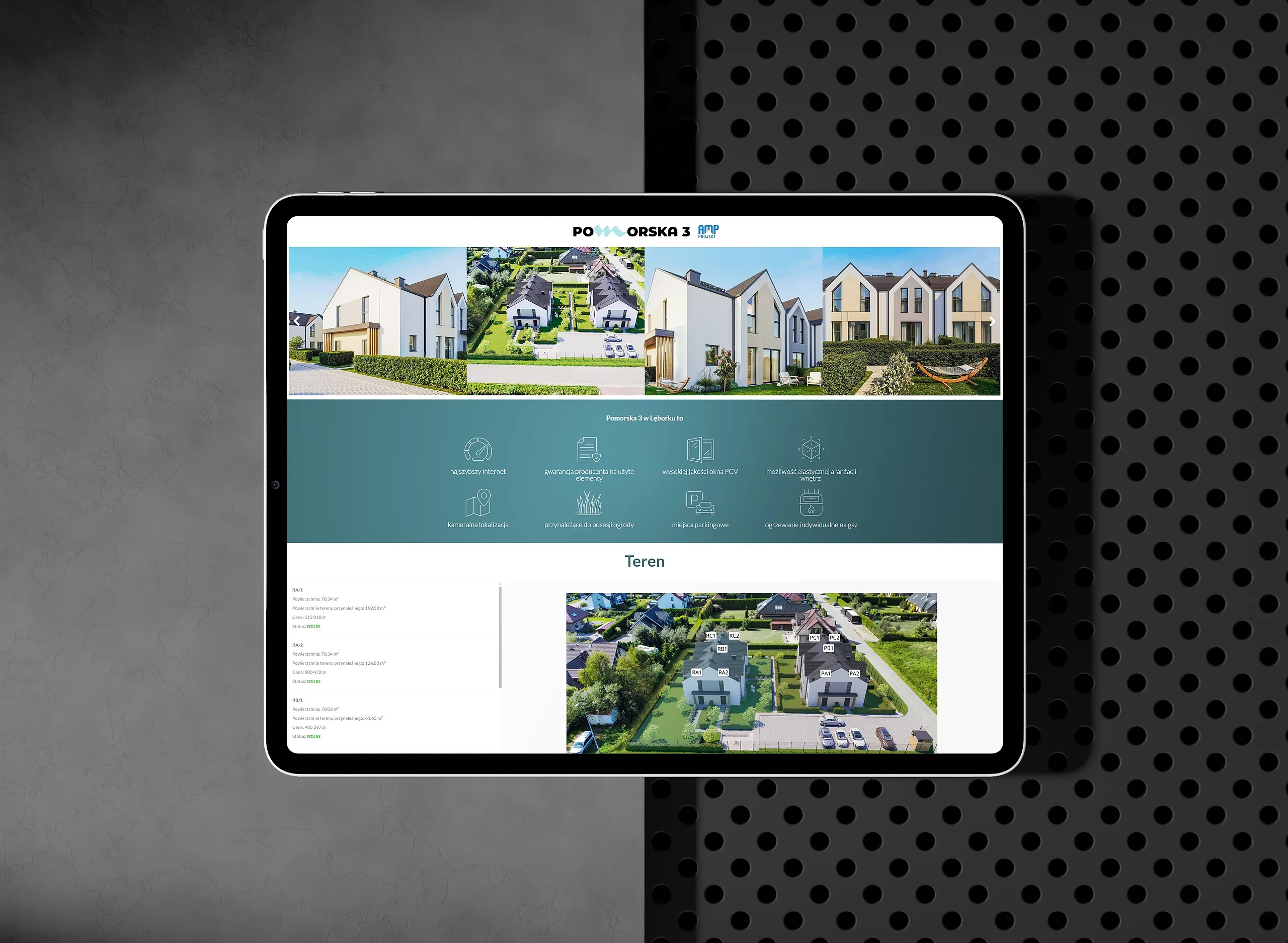 Projekt. Jakość i niezawodność — te cechy charakteryzujące naszego klienta przyświecały i nam podczas realizacji projektu serwisu internetowego. Strona posiada przejrzystą ofertę – widoczność, co i gdzie jest oferowane, jakie warunki, jakie standardy, co wyróżnia daną inwestycję. Sekcja inwestycji podzielona jest na zakończone i aktualnie będące w sprzedaży, opatrzone pokazem postępów inwestycji. Kompleksowe informacje techniczne umieszczone na stronie zawierają aspekty użytkowe: ogrzewanie, media, smart home, dojazd, działki. Integracja serwisu z rzetelnie i obrazowo prowadzonymi profilami mediów społecznościowych, podkreśla żywy i relacyjny charakter firmy. Moduł opinii pozwala klientom zapoznać się z doświadczeniami innych. Uwzględniając aktualne prawo, strona zawiera cennik z historią zmian cen lokali, publikowaną na stronie wraz z informacją o poprzedniej cenie i dacie zmiany, tak by klienci mogli porównać, jak kształtowała się oferta w czasie.